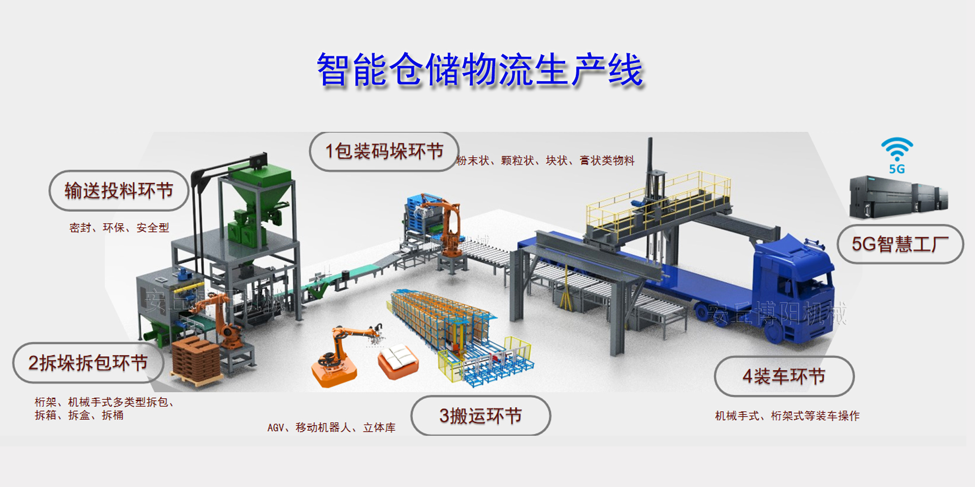 可用于倉庫、車站、貨場、碼頭等 包裝、裝卸、運儲行業的倉儲搬運物流裝備的智能生產線